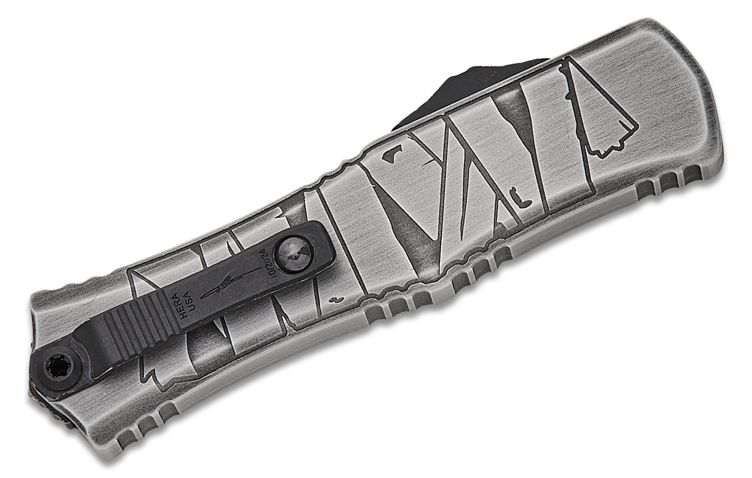 The brushed metal contoured aluminum handle with Halloween Mummy Wrap engraving offers a refined, ergonomic grip with intricate patterns for secure hold, paired with an OTF automatic double-action mechanism for lightning-fast deployment in a 7.25-inch overall length that’s 4.25 inches closed and an ultralight 2.3 ounces. A reversible deep-carry titanium pocket clip with ceramic balls ensures discreet, frictionless carry. USA-built with Microtech’s unmatched craftsmanship, this Signature Series Hera II Mini combines heritage and ferocity – deploy it and command the edge.