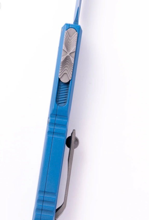 Premium Blade: 3.35-inch double-edge dagger M390MK steel with blue Cerakote finish for superior sharpness and durability. Smooth Operation: Dual fuel drivetrain with Zero Blade Play for secure, automatic deployment and retraction. Ergonomic Handle: Blue Cerakote 6061-T6 aluminum for lightweight, tactical control in any condition. Versatile Carry: Tip-down pocket clip for custom EDC. USA Quality: Crafted in America with Microtech’s precision engineering.