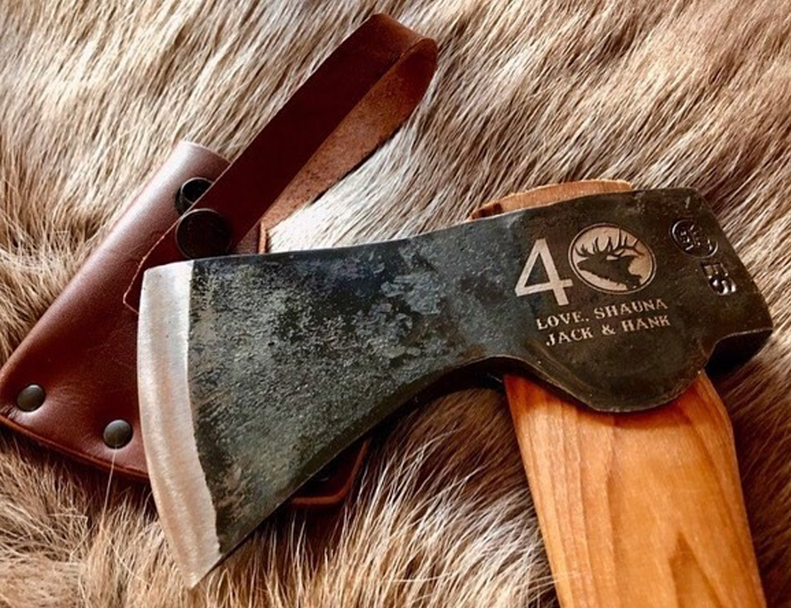 Why have Timber Knives laser engrave your knife or axe when you’ve purchased it as a gift? Giving the gift of an engraved knife or axe is a great way to personalize and preserve a memory for a special occasion. Many people have already experienced the personalized knife or axe will later become a cherished heirloom within their family in the future.A knife is a classic and practical present. To suit the recipient's precise preferences and requirements, they can be meticulously chosen and engraved for just about anyone. For any event, from birthdays to weddings and anniversaries, there are knives for outdoor enthusiasts, food lovers, and survivalists.